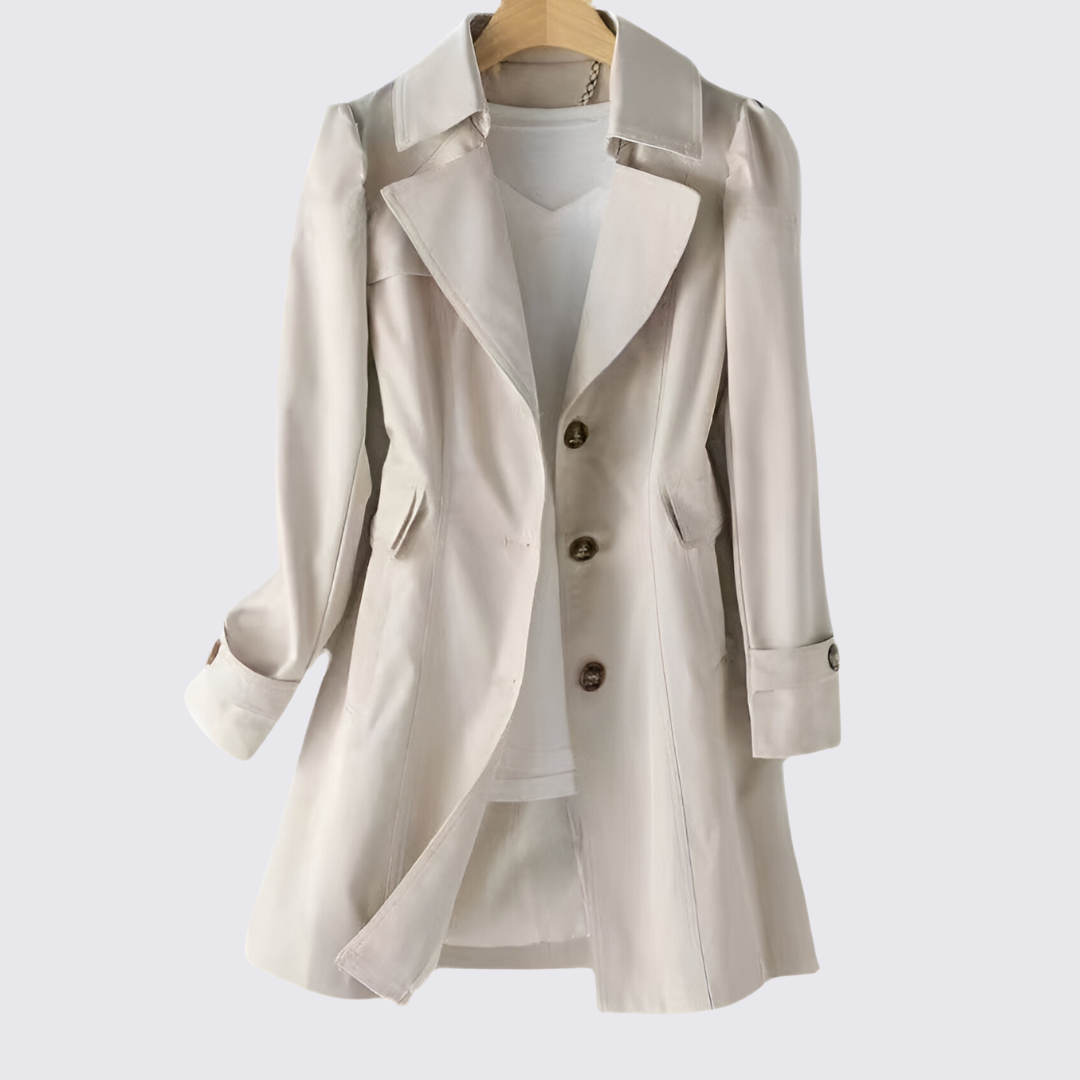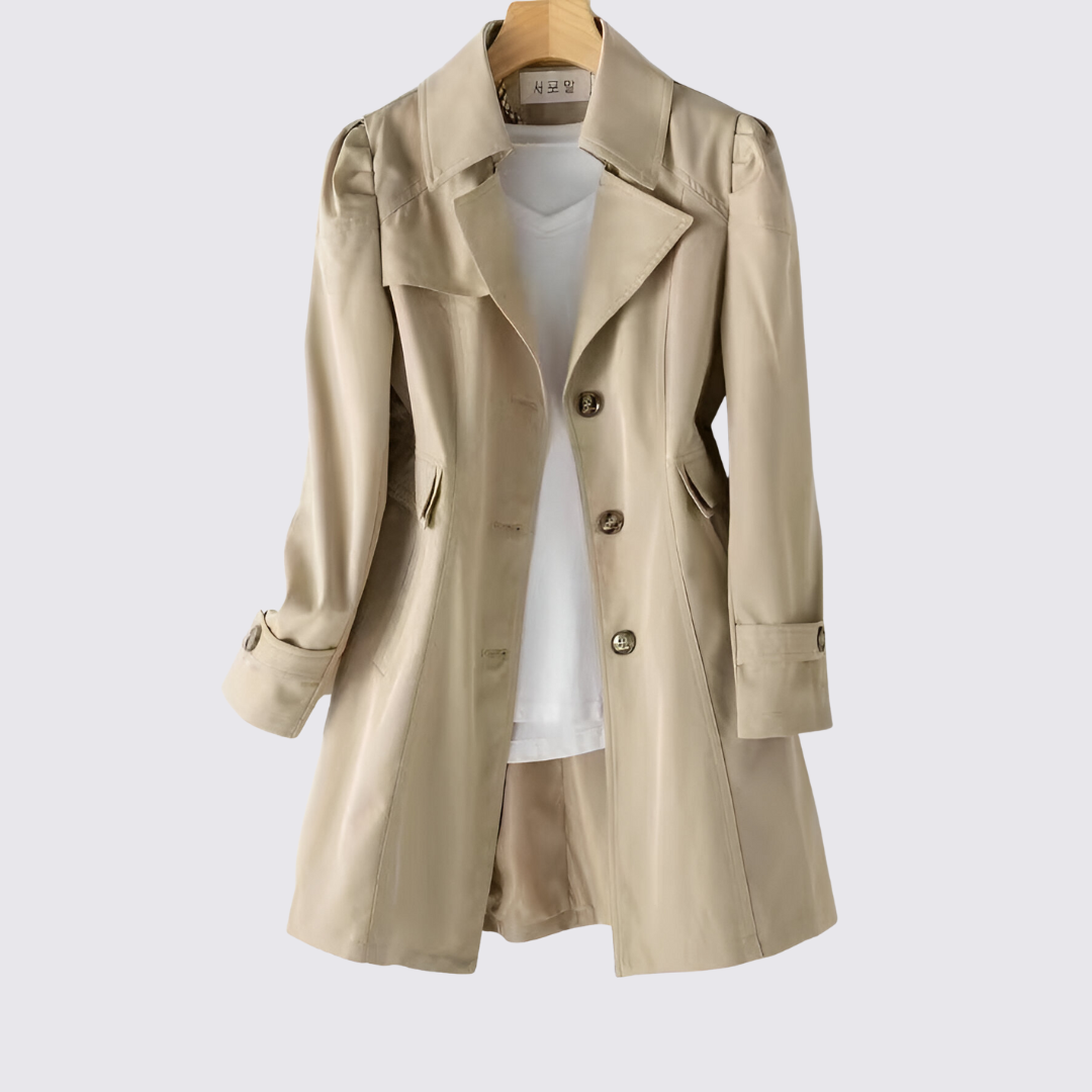 Damen Langarm Mantel mit Knopfleiste – Mit Taschen – Eleganter Schnitt