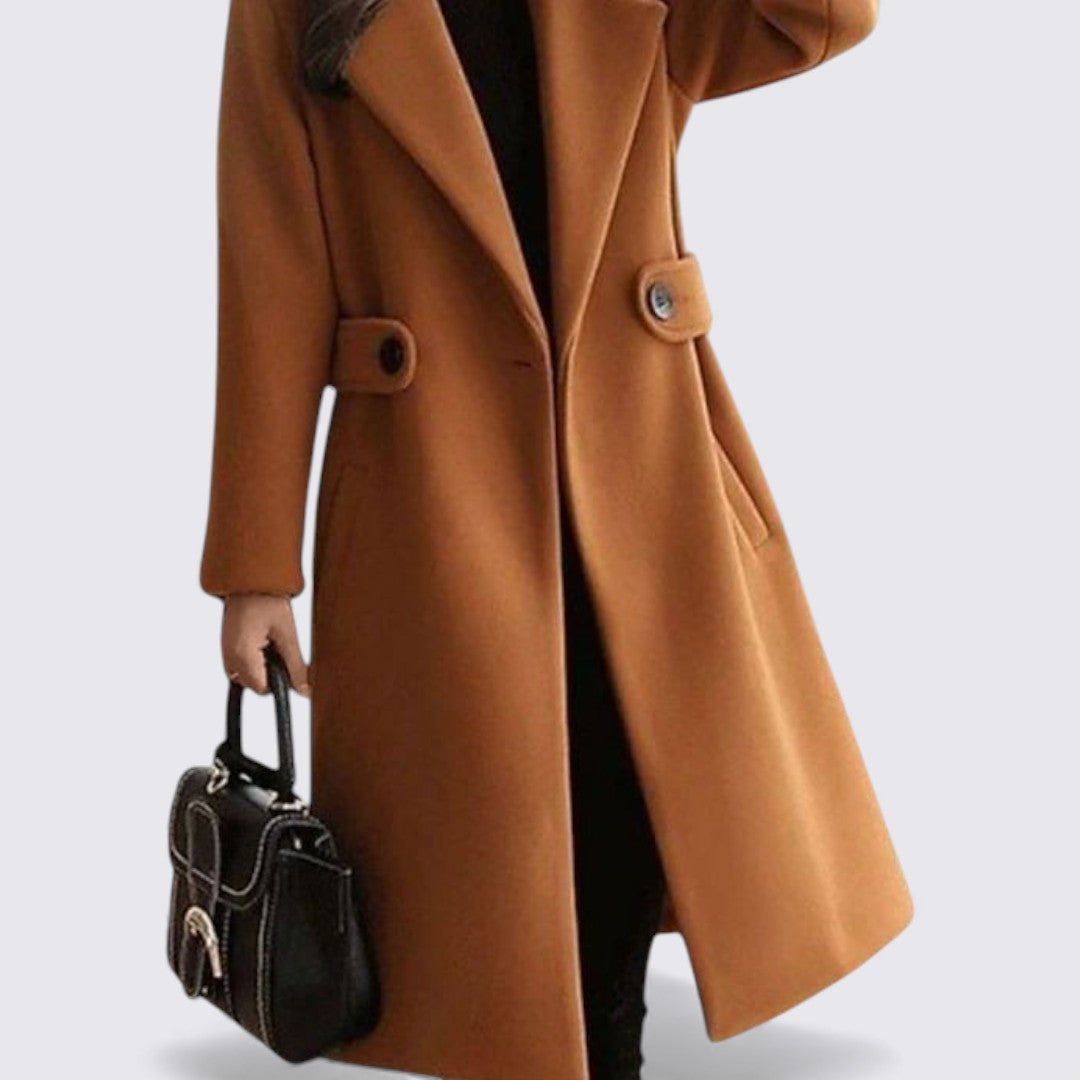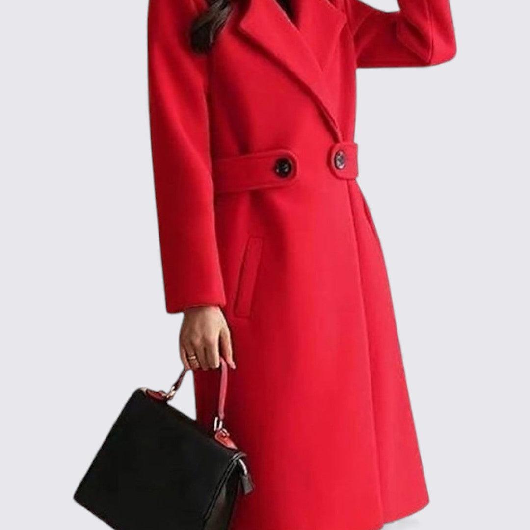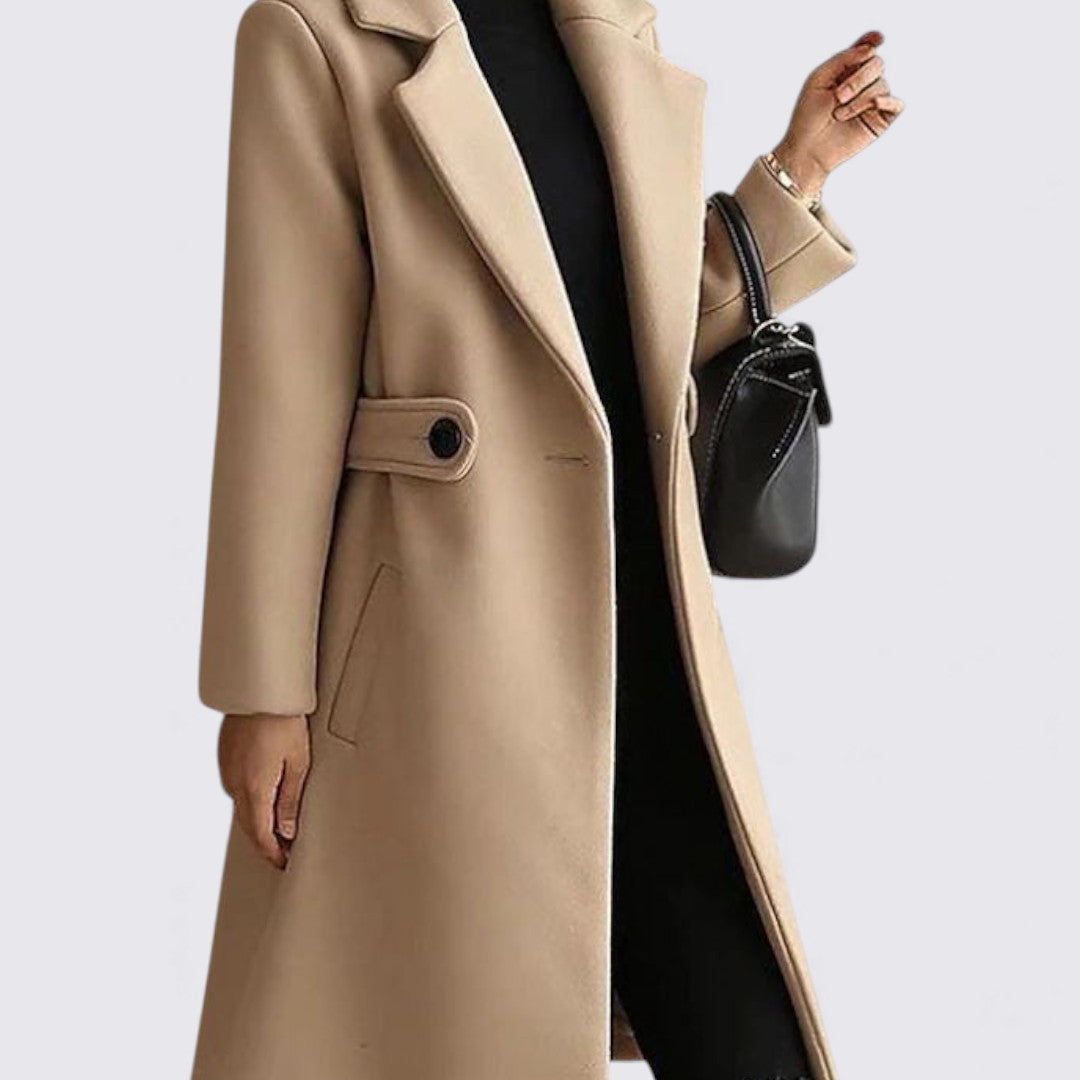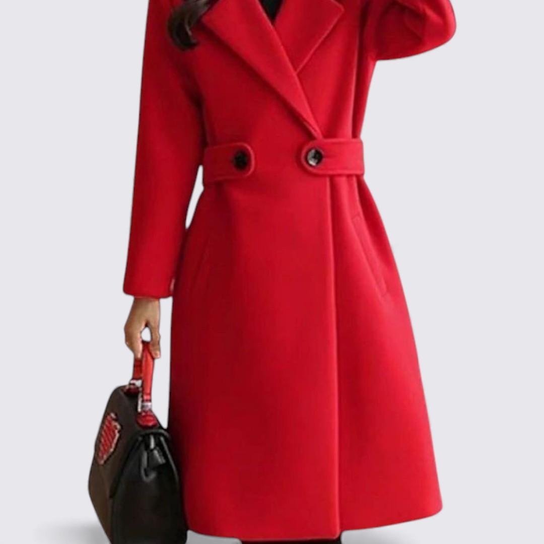 • Gürtel in der Taille: Ein prägendes Detail, das dem Mantel Struktur verleiht und das Gesamtbild klar gliedert.