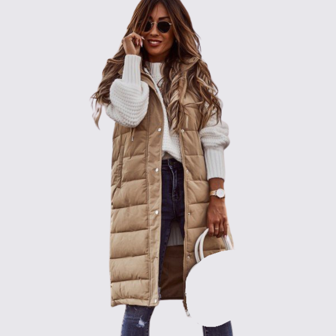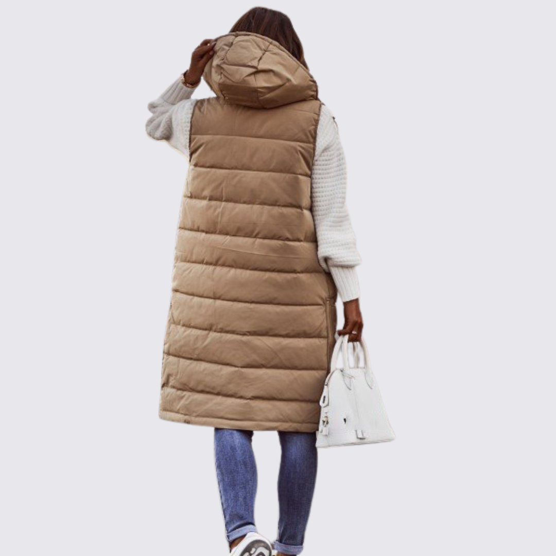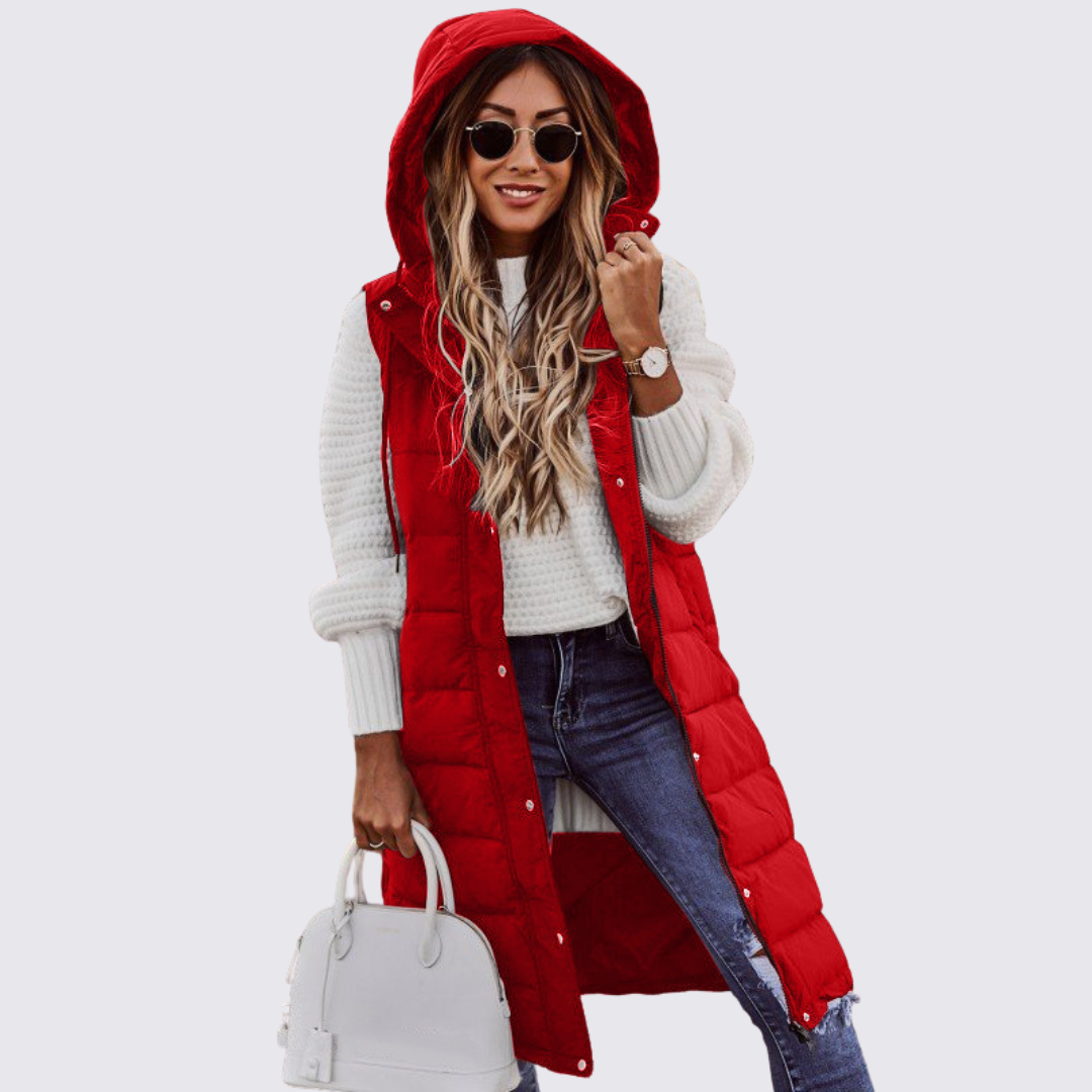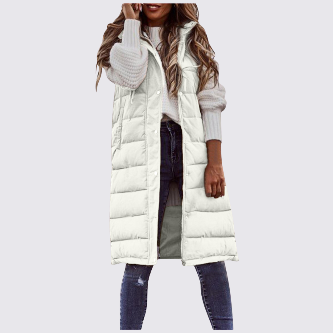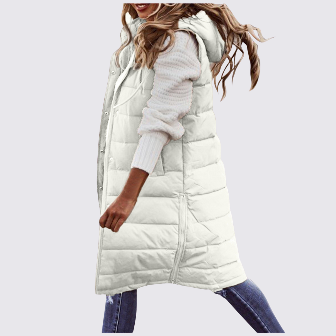 Damen Steppweste mit Kapuze – Lang geschnitten – Warm