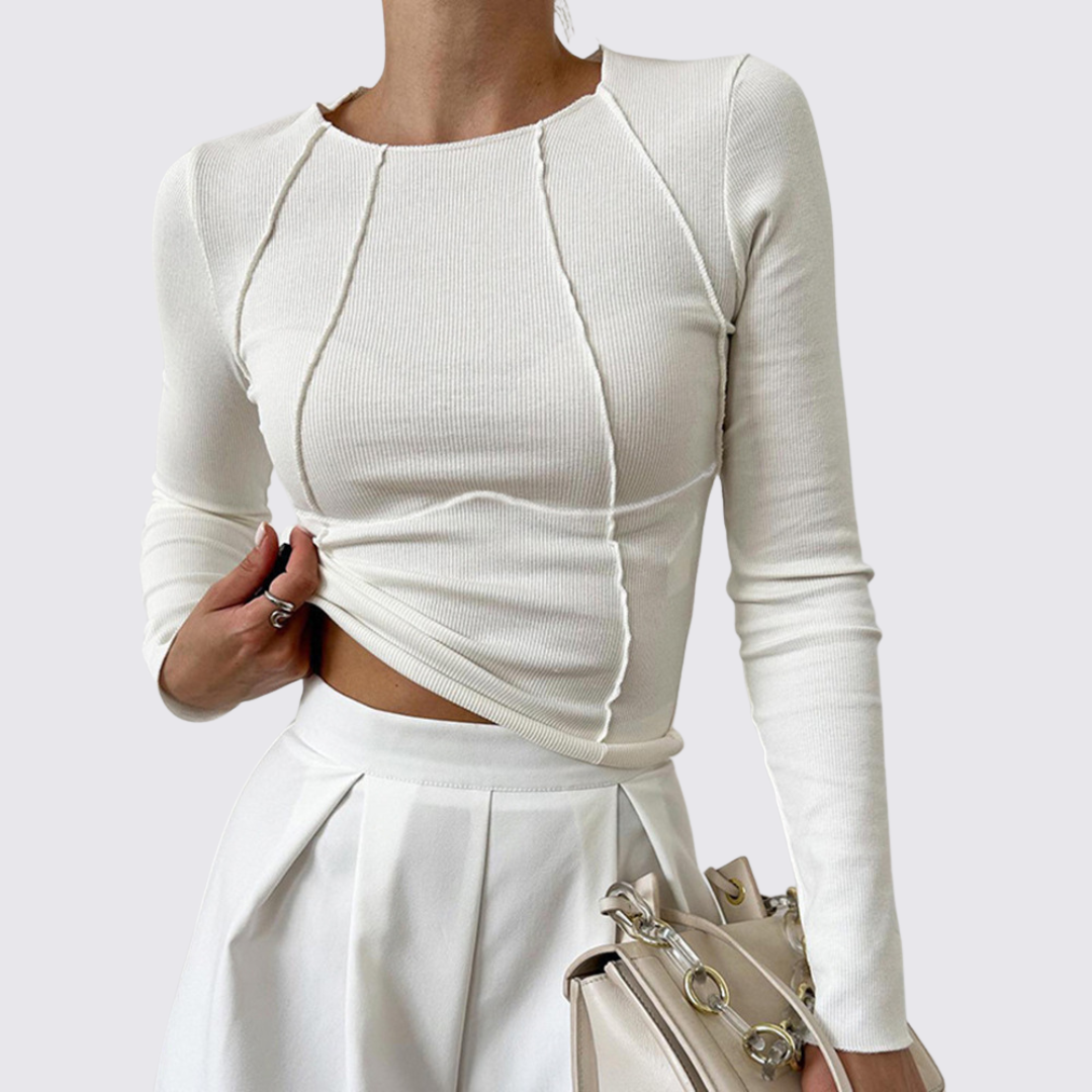 Entdecken Sie ein Langarm-Oberteil, das durch seine ruhige Ausstrahlung überzeugt. Dieses Modell zeigt sich mit Rundhals, feiner Rippstruktur und sichtbaren Nahtlinien, die dem Gesamtbild eine moderne Klarheit verleihen. Es eignet sich für den Alltag, für die Stadt oder für ungezwungene Treffen und lässt sich vielseitig tragen.