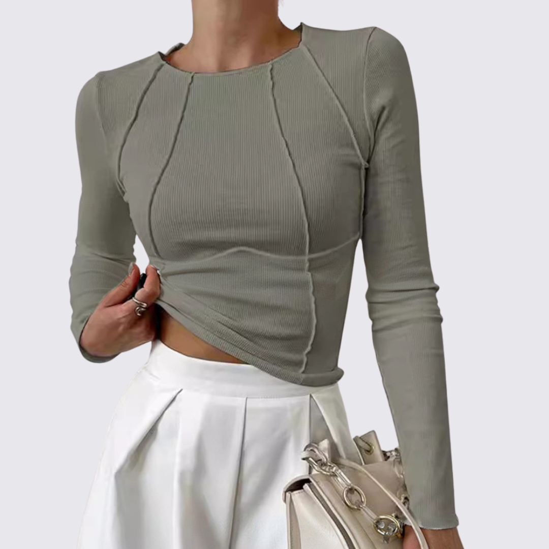 Damen Langarm Oberteil – Rundhals – Gerippt