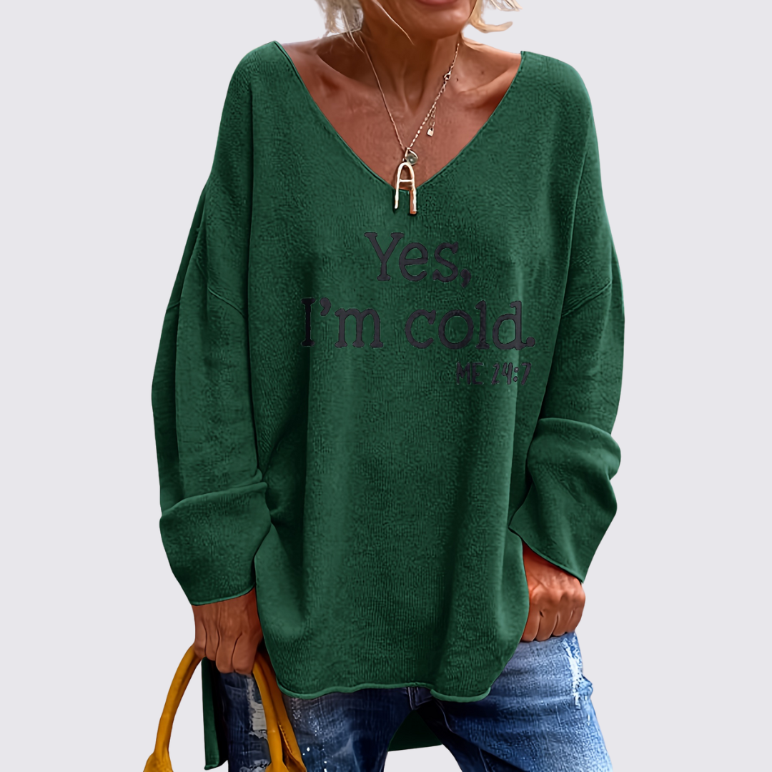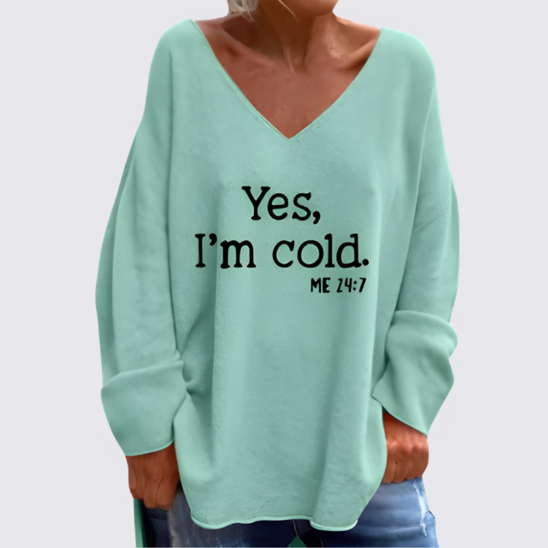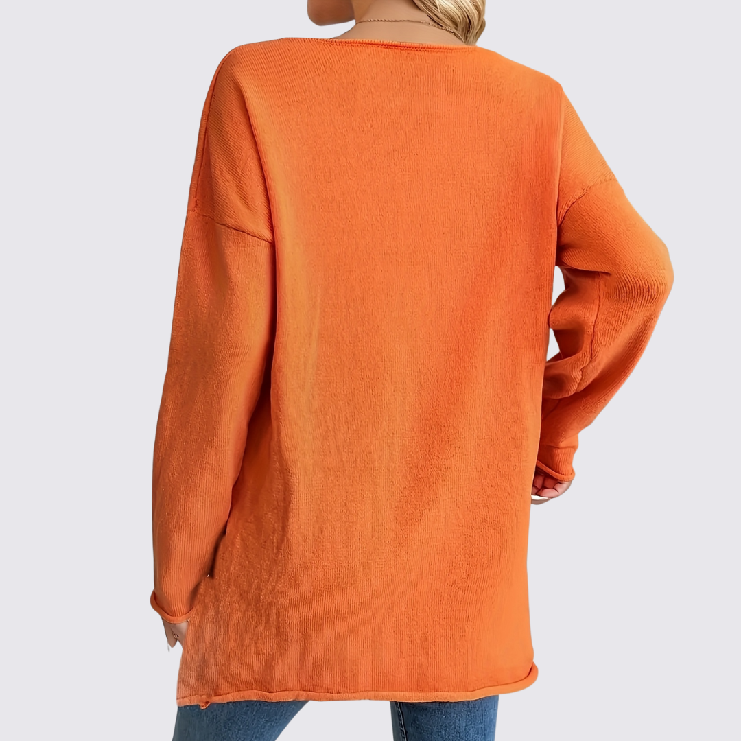 • V-Ausschnitt: Der offen gestaltete Ausschnitt bringt Leichtigkeit ins Gesamtbild und unterstreicht die feminine Linie des Pullovers.