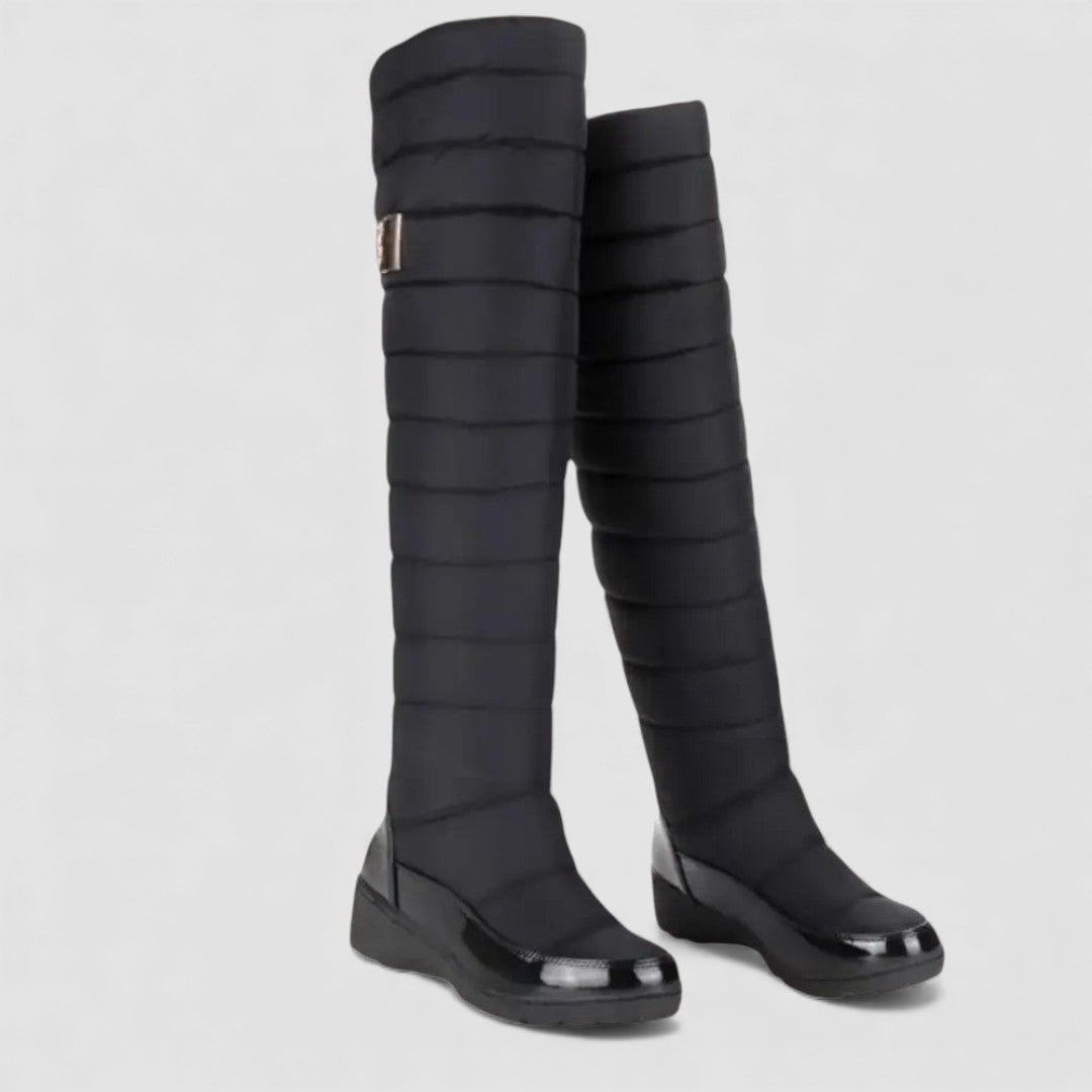 Entdecken Sie Overknee-Winterstiefel, die durch ihre gefütterte Ausführung und die markante Höhe überzeugen. Der lange Schaft schützt bis über das Knie, während der Keilabsatz dem Modell eine ruhige, stabile Linienführung verleiht. Ideal für winterliche Alltage, Wege in der Stadt oder längere Aufenthalte im Freien.