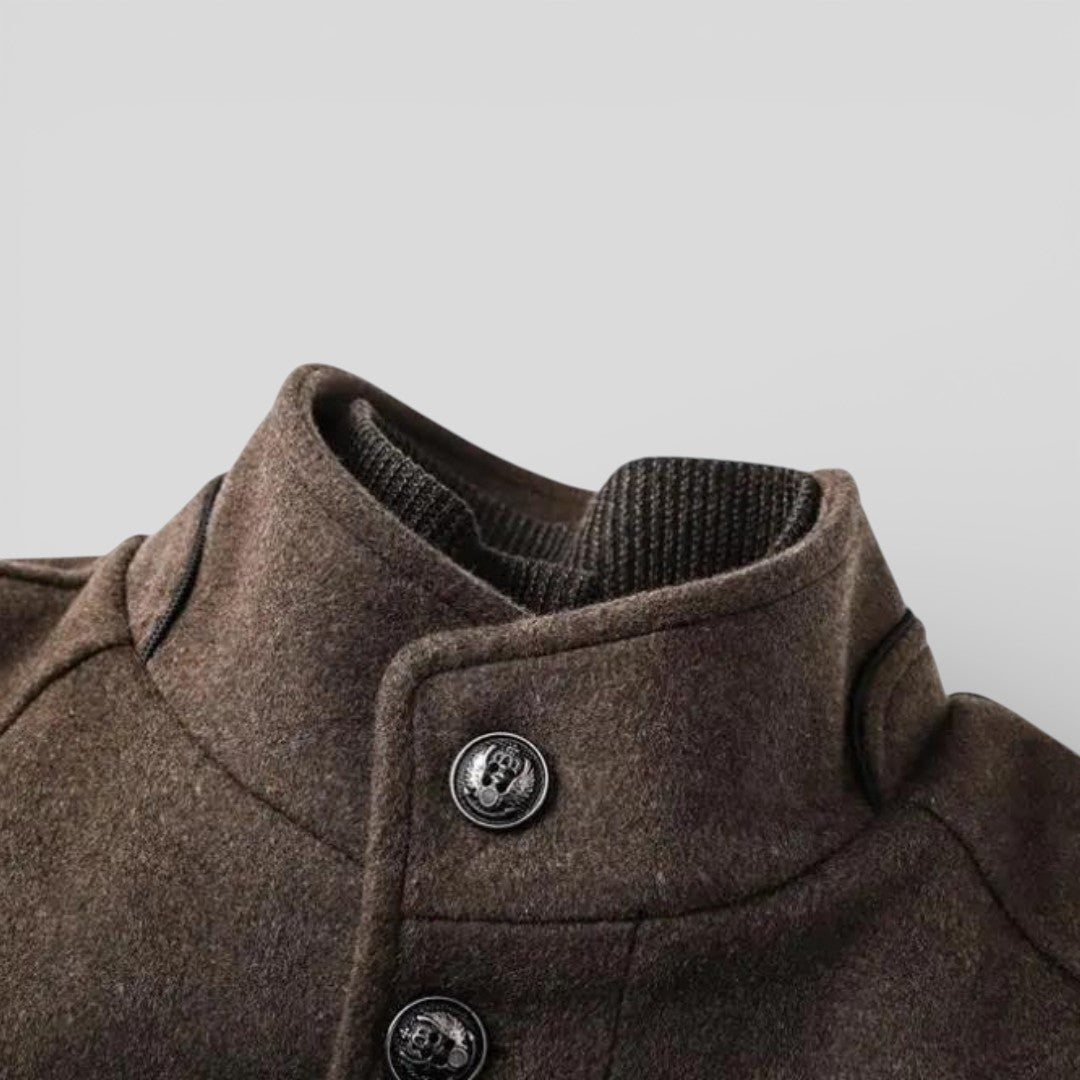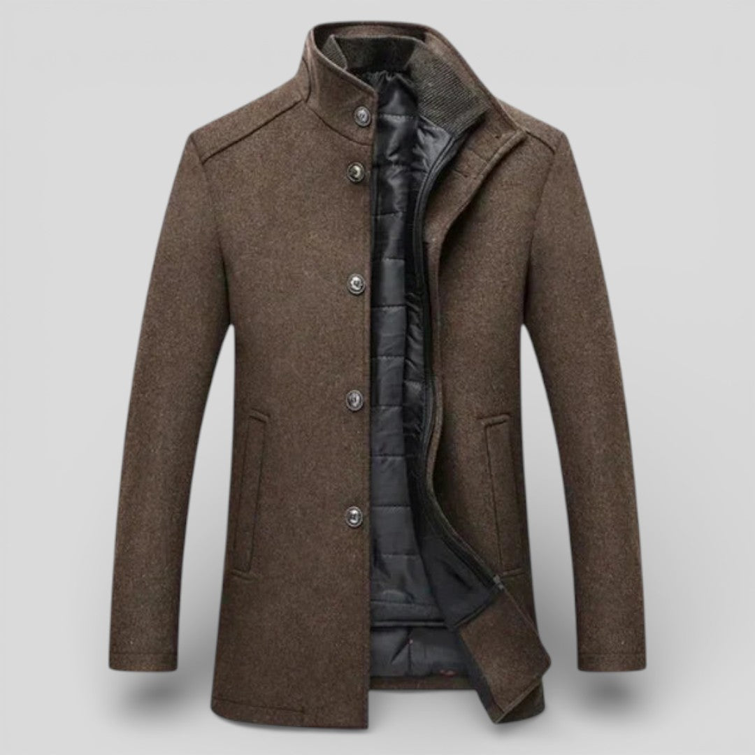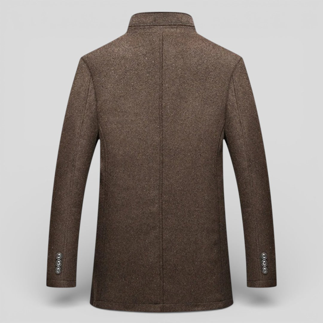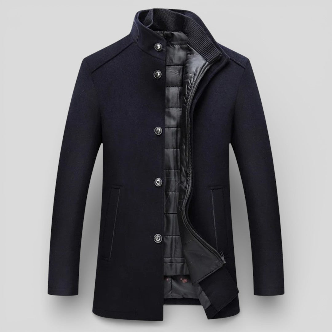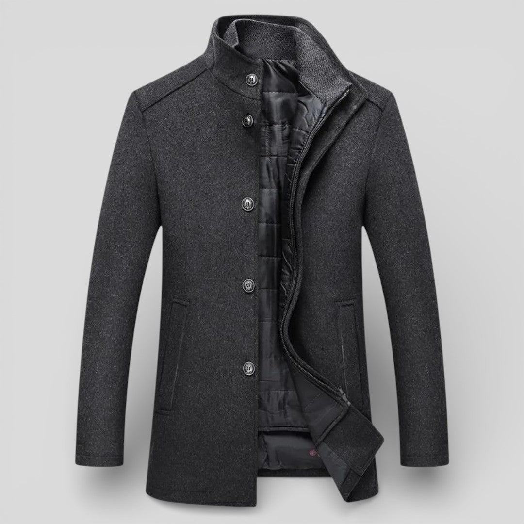 Herren Mantel mit Stehkragen - Langer Mantel - Knopfleiste Vorne